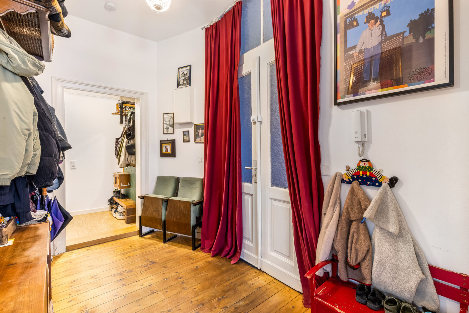 Linkerhand des Einganges befindet sich das Wohnzimmer, in welchem Sie es sich mit Ihren Liebsten so richtig bequem machen können! Die hohen Fenster sorgen für eine angenehme Atmosphäre. Angrenzend an dieses Zimmer liegt ein ebenfalls schön großer Raum, welcher aktuell als Schlafzimmer genutzt wird. Von hier aus haben Sie einen der zwei Zugänge in den Innenhof des Hauses. Wie Sie dieses Zimmer nutzen, liegt ganz bei Ihnen!