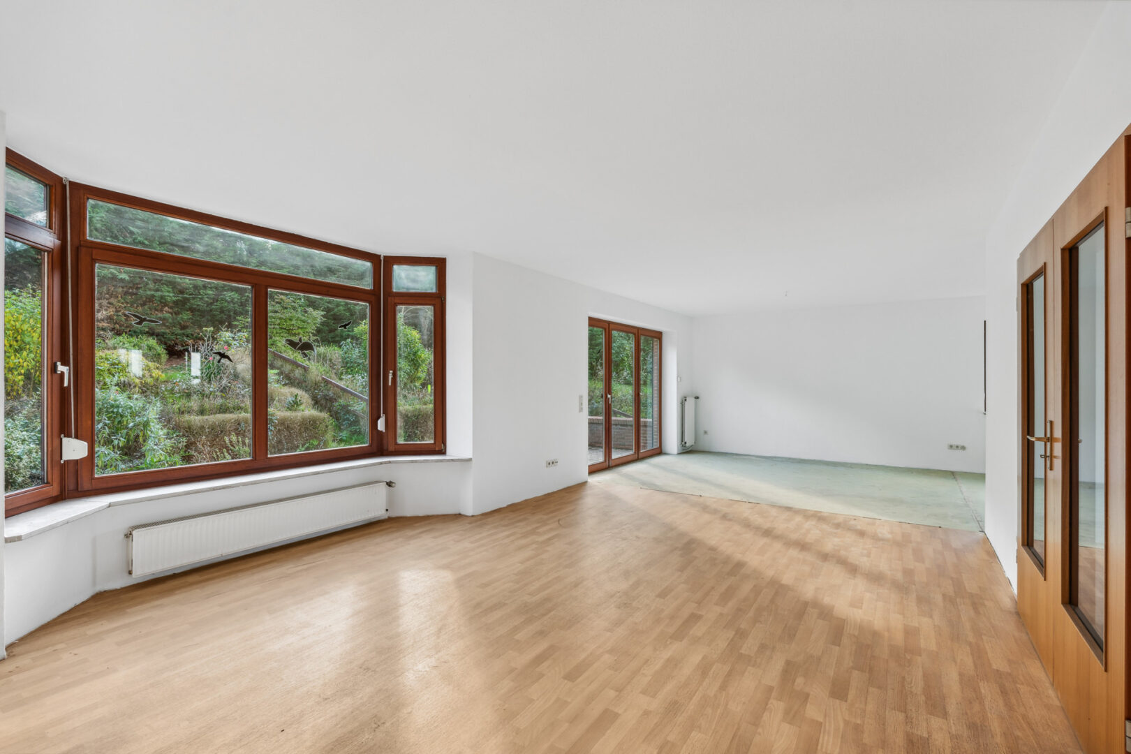 Vom großen Eingangsbereich aus erreichen Sie alle Räume, die sich im Erdgeschoss befinden. Das Highlight ist hier der offene Wohn- und Essbereich, von welchem aus man einen tollen Blick in den schönen Garten hat. Hier können Sie Ihren gestalterischen Vorstellungen auf fast 51m² freien Lauf lassen! Durch die großen Fenster wird das Haus stets angenehm erhellt. Von Hier aus erfolgt der Zugang auf die sonnige Terrasse und den angrenzenden Garten. Der Garten erstreckt sich auf beiden Seiten um das Haus und bietet reichlich Platz zum Sonnen und Entspannen!
