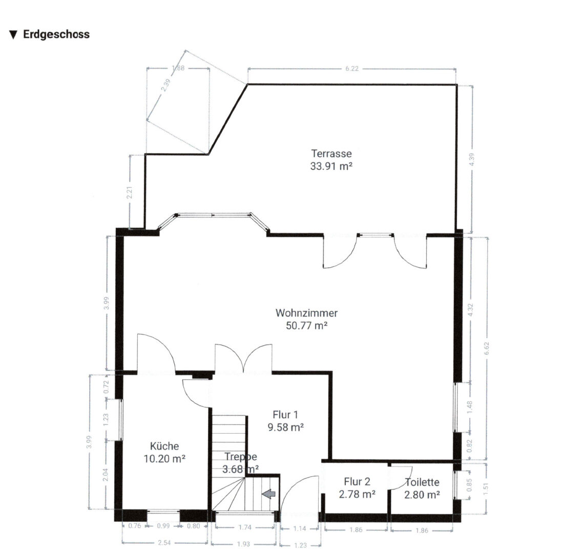 Das Erdgeschoss verfügt außerdem über ein Gäste-WC.