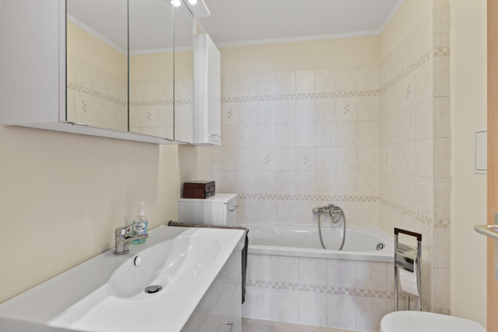 Ein zweites Badezimmer mit Dusche steht ebenfalls zur Verfügung und sorgt für einen reibungslosen Ablauf im Alltag – besonders praktisch bei mehreren Personen im Haushalt. Beide Bäder sind funktional, vollständig ausgestattet und in einem sauberen, gepflegten Zustand.