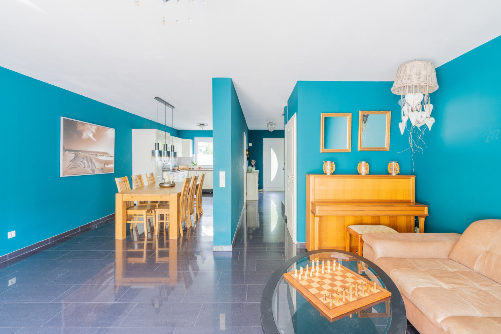 Im Erdgeschoss befinden sich der große Wohn- und Essbereich mit der angrenzenden Küche, der Zugang zur Terrasse sowie ein Gäste-WC. Der Wohnbereich ist ca. 41m² groß und bietet Ihnen die Möglichkeit, Ihren kreativen Vorstellungen freien Lauf zu lassen. Ein großes Sofa, ein Esstisch für Sie und Ihre Liebsten und weitere Möbel lassen sich hier mit Leichtigkeit platzieren.
