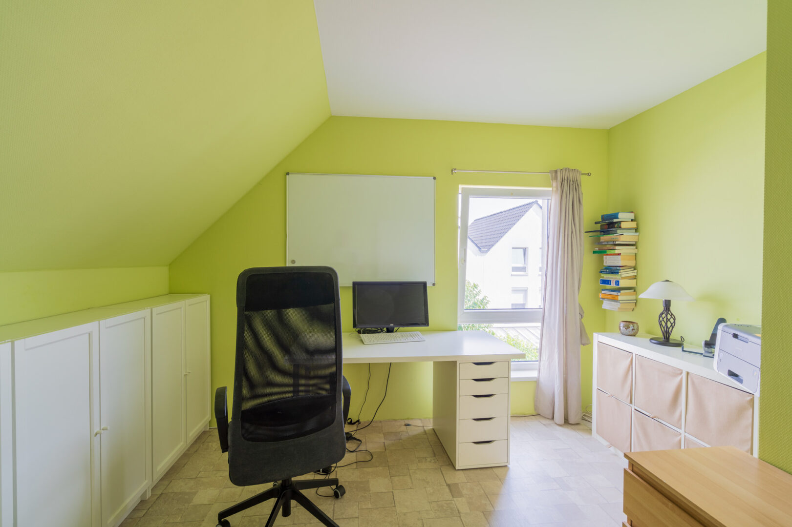 Auch das zweite Obergeschoss ist vollwertig ausgebaut und verfügt über ein großes Schlafzimmer, ein geräumiges Arbeitszimmer, einen Hauswirtschaftsraum sowie einen Heizungsraum.