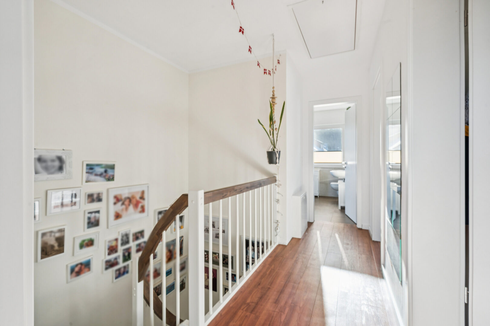 Im Obergeschoss erwarten Sie drei helle, flexibel nutzbare Zimmer sowie ein komfortables Badezimmer mit ebenerdiger Dusche, Badewanne und viel Tageslicht. Ein weiterer Vorteil besteht darin, dass im Obergeschoss keine Schrägen existieren. Daher können Sie sich bei der Einrichtung kreativ ausleben. Im gesamten Haus sorgen dreifach verglaste Fenster (teilweise mit Fliegengittern) Außenjalousien und eine Fußbodenheizung für hohen Wohnkomfort. Der Vollkeller bietet zusätzliche Nutzfläche für Hobby, Gäste oder Stauraum und erweitert die Nutzungsmöglichkeiten spürbar. Auch der Dachboden bietet weiteren Stauraum.
