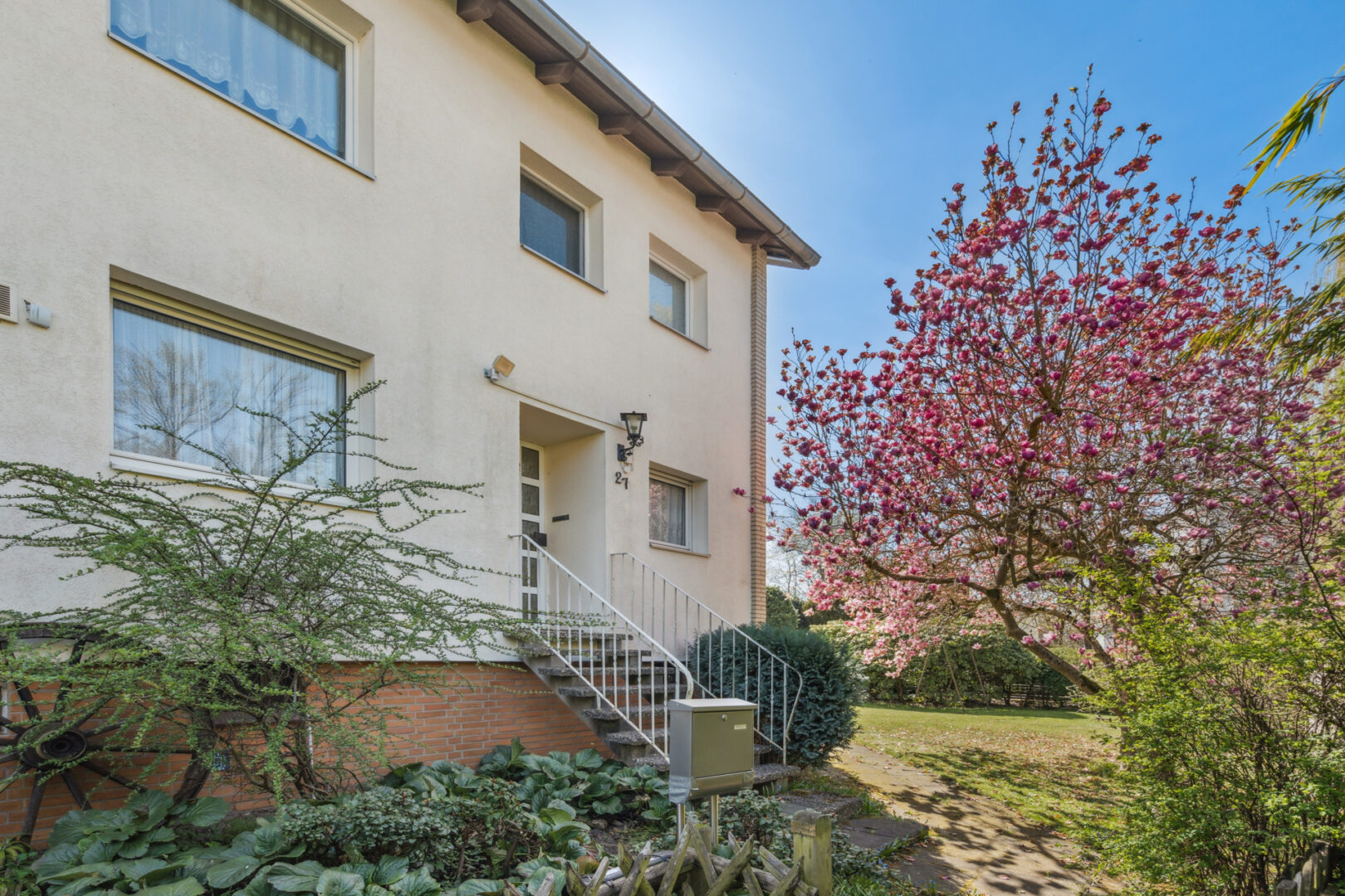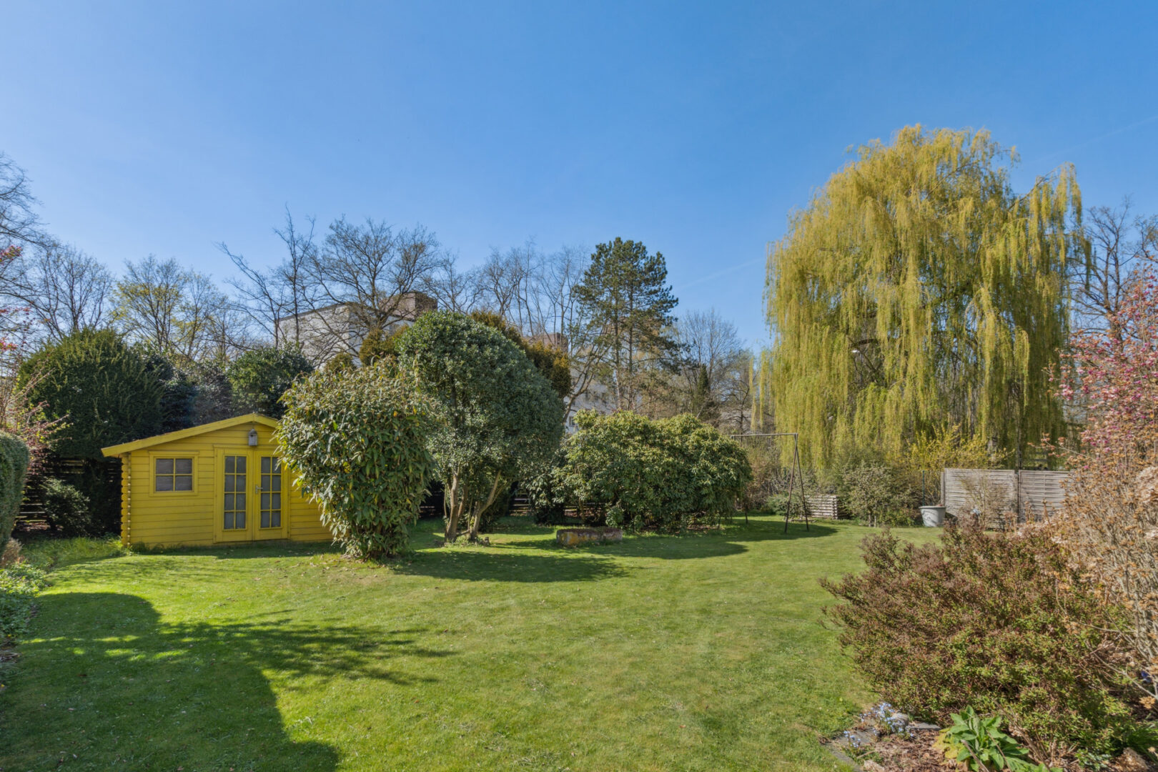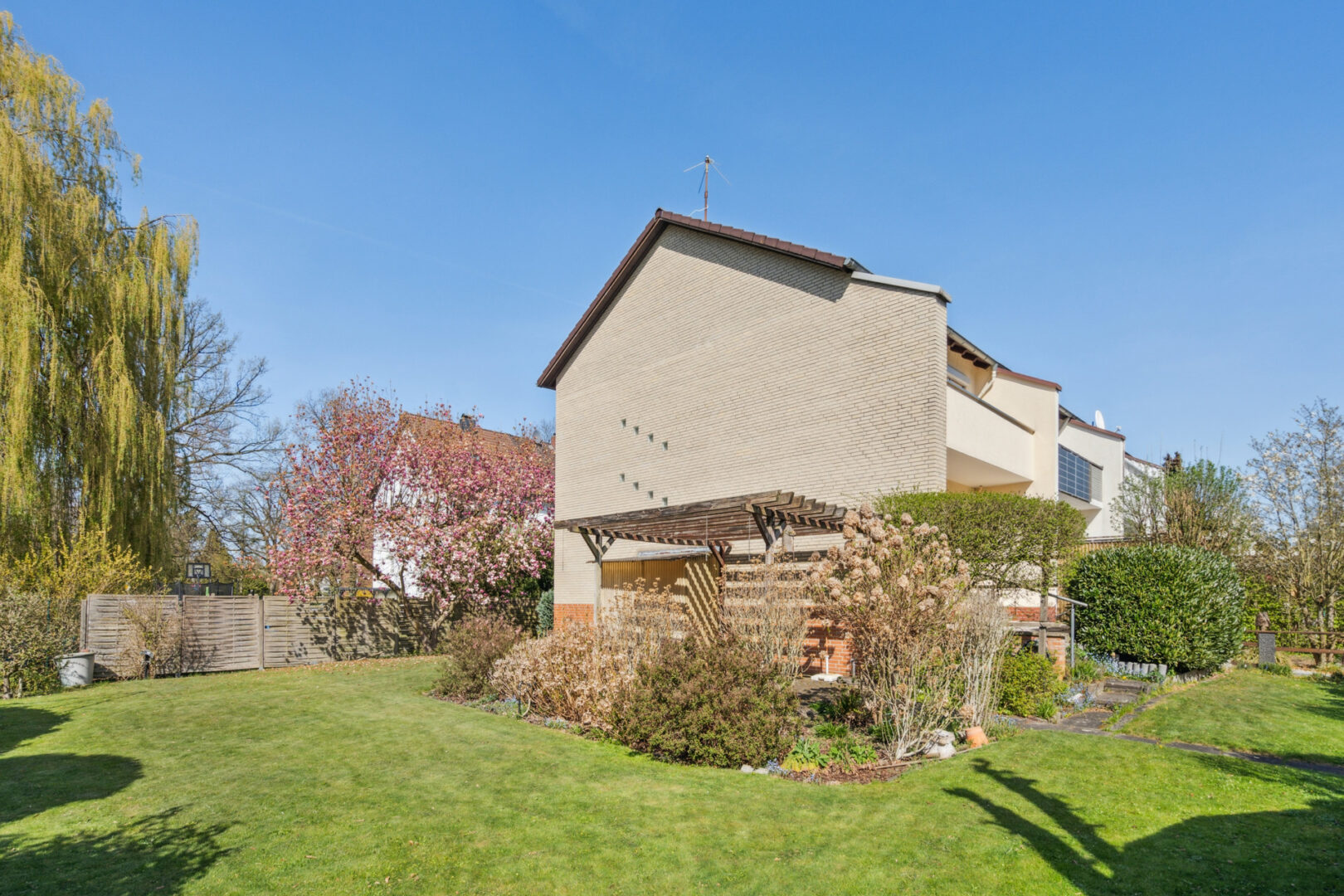 Der Garten mit seinen rund 666 m² ist ein echtes Highlight. Er umgibt das Haus von drei Seiten, bietet viel Platz und Privatsphäre – und ist ein wunderbarer Ort, um den Alltag hinter sich zu lassen. Zwei Terrassenbereiche schaffen zusätzlichen Raum im Freien.