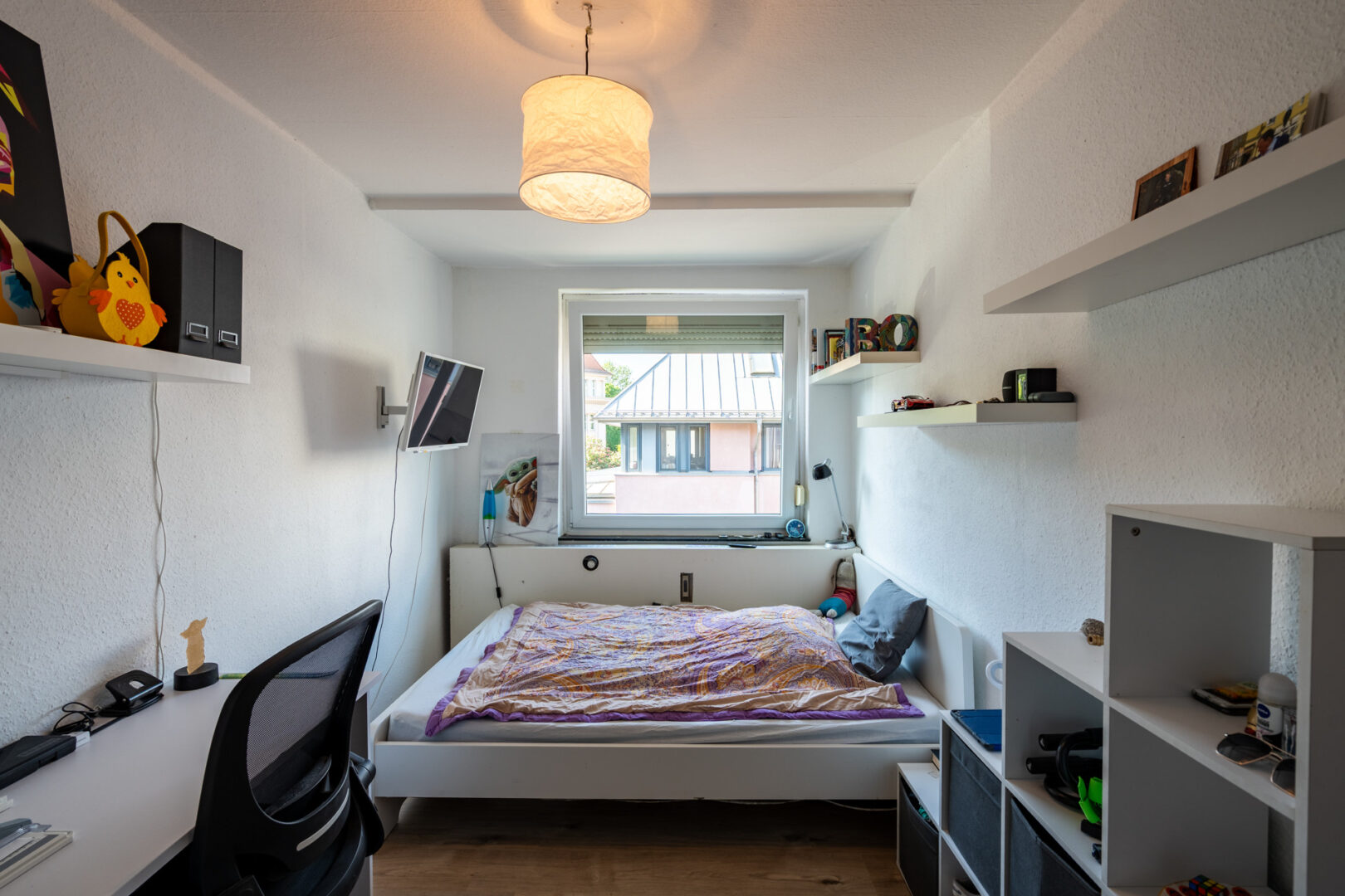 Zwei weitere Zimmer stehen als Kinder-, Arbeits- oder Gästezimmer zur Verfügung. Beide sind hell, gut proportioniert und vielseitig nutzbar – ideal für individuelle Lebenskonzepte und unterschiedliche Anforderungen im Alltag. In den Wohn- und Schlafräumen sorgen elektrische Rollläden und Markisen für zusätzlichen Komfort und ein angenehmes Raumklima – besonders an sonnigen Tagen ein geschätztes Extra, das Wohnqualität schafft.