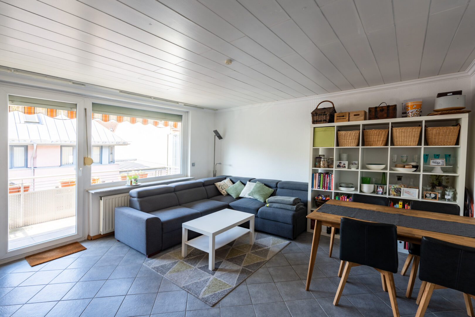 Das Wohnzimmer ist großzügig geschnitten und dank der Fenster hell und freundlich. Von hier aus betreten Sie den Balkon – ein angenehmer Ort zum Durchatmen, für eine kurze Pause zwischendurch oder zum ruhigen Ausklang des Tages. Die Fensterflächen sorgen für eine freundliche Lichtstimmung und unterstreichen das angenehme Wohngefühl.